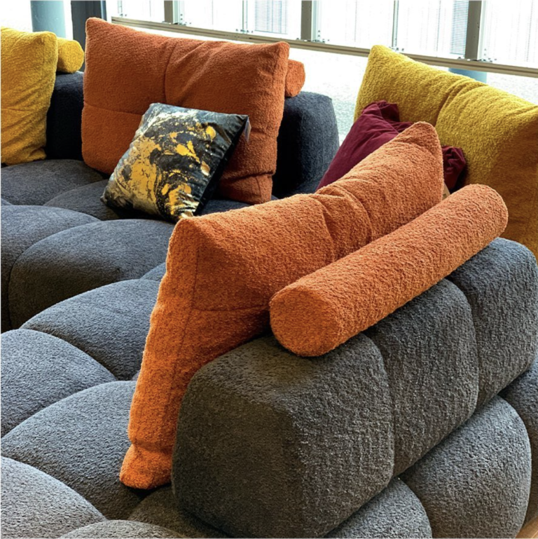 Pour un effet contrasté, il est possible d’assortir PEBBLE à des coussins de couleurs vives ou à motifs.
