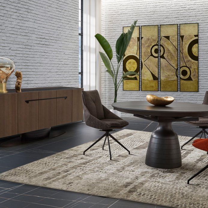 Dès le premier coup d’oeil, la table VETRAA surprend, et c’est ici l’idée. Son allure « comme suspendue en équilibre », à la fois contemporaine et décalée, reste dans la lignée des créations sans compromis de Johnny Dos Passos. Ce tour de force est parti d’une question : comment insuffler du mouvement dans un meuble ?